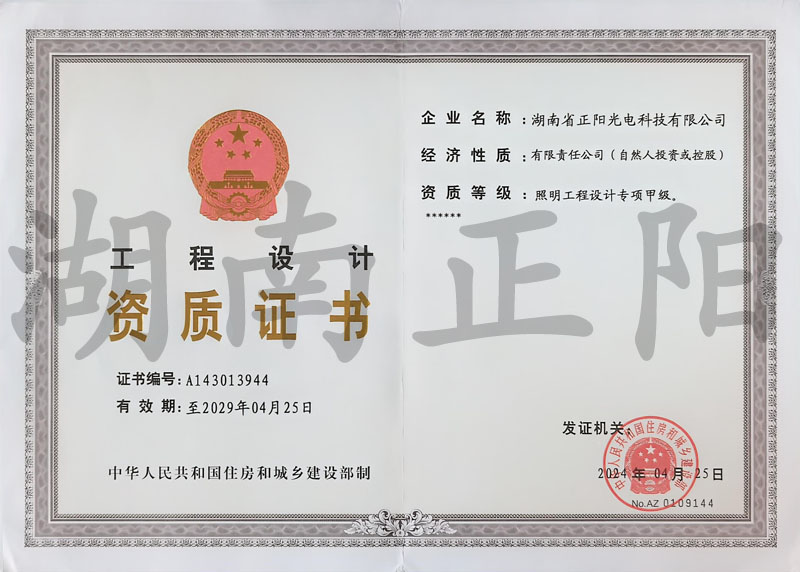 • 照明工程設(shè)計(jì)專項(xiàng)甲級(jí)資質(zhì)